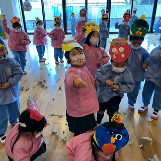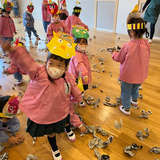 豆まきの練習をしている時は おにはそとー!ふくはうちー! と言いながら新聞紙で作った豆を上手に投げていたすずらん組さん👹✨